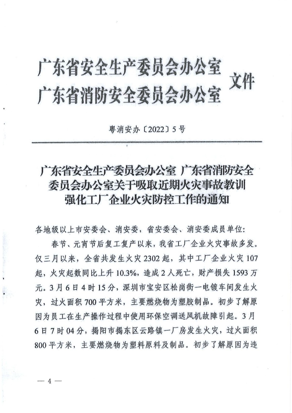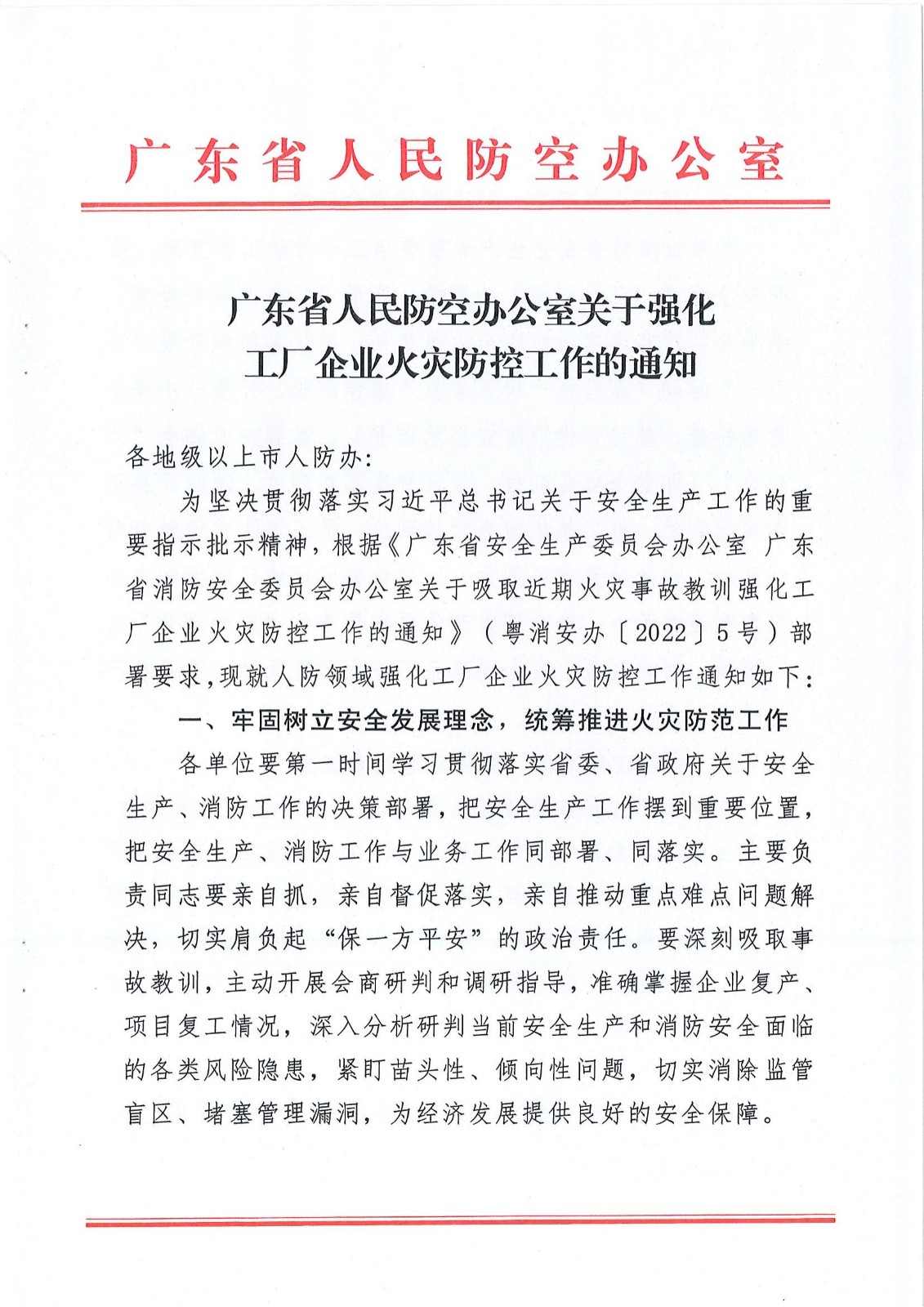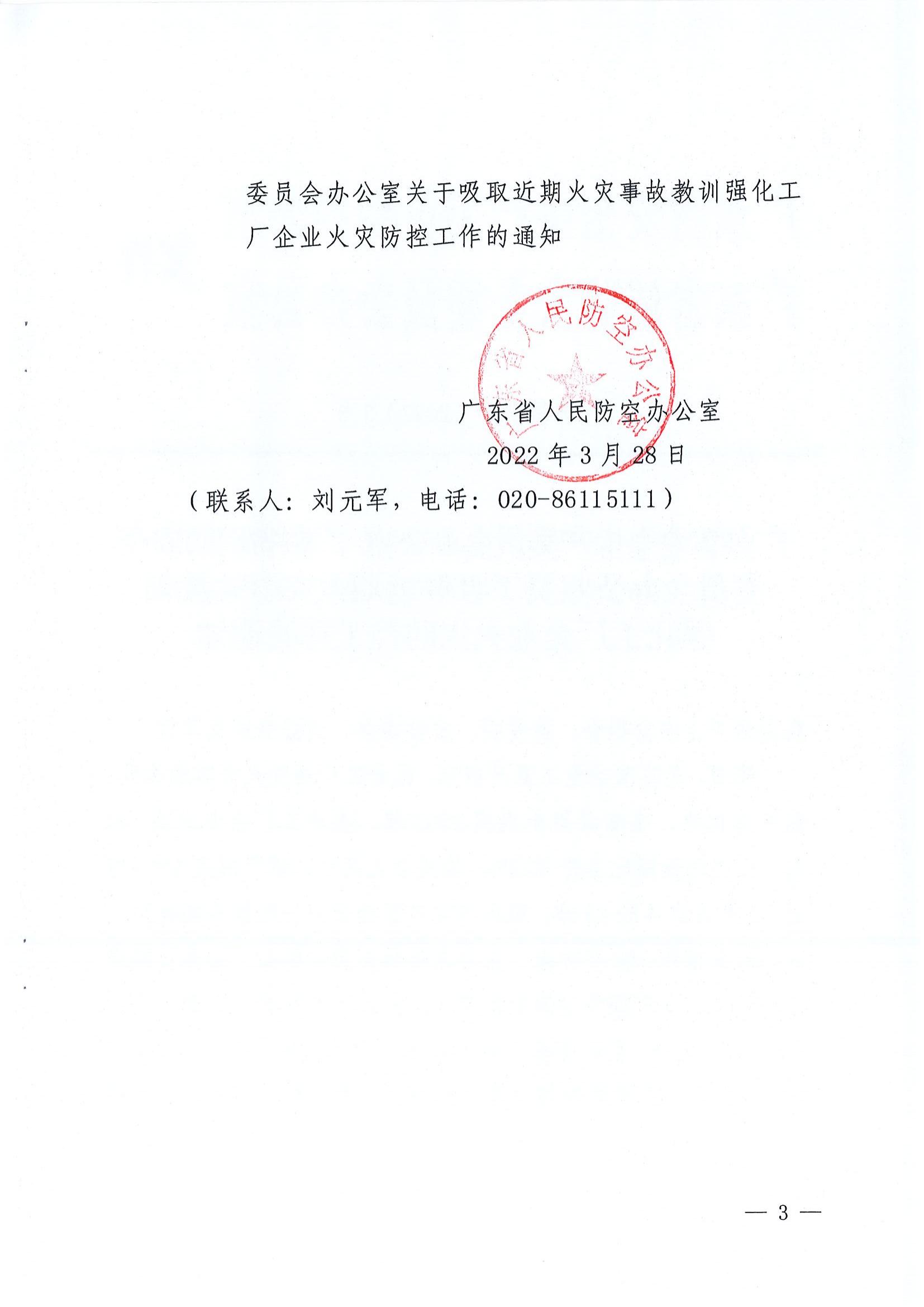 转发《广东省人民防空办公室关于强化工厂企业火灾防控工作的通知》